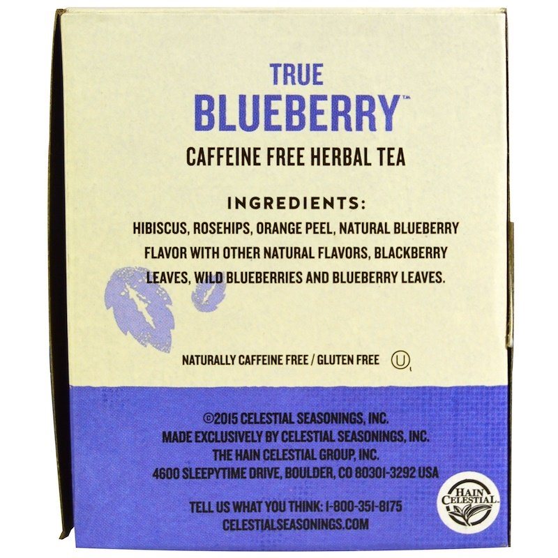 Celestial Seasonings, Herbal Tea, Caffeine Free, True Blueberry, 20 Tea Bags, 1.6 oz (45 g)