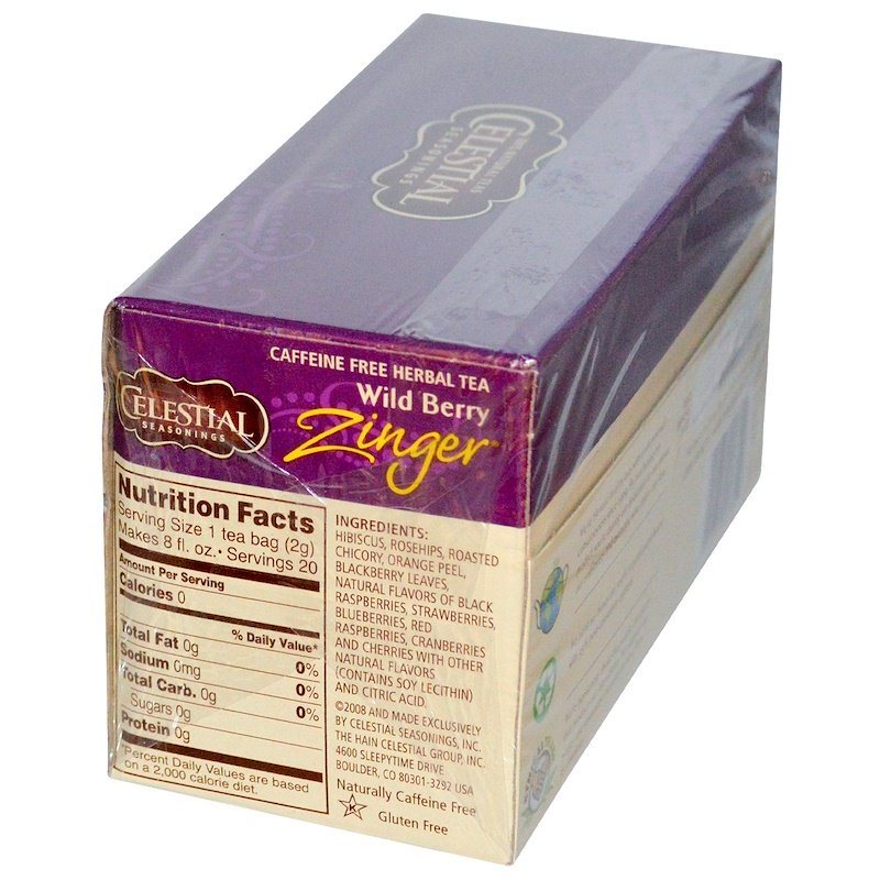 Celestial Seasonings, Herbal Tea, Caffeine Free, Wild Berry Zinger, 20 Tea Bags, 1.7 oz (47 g)